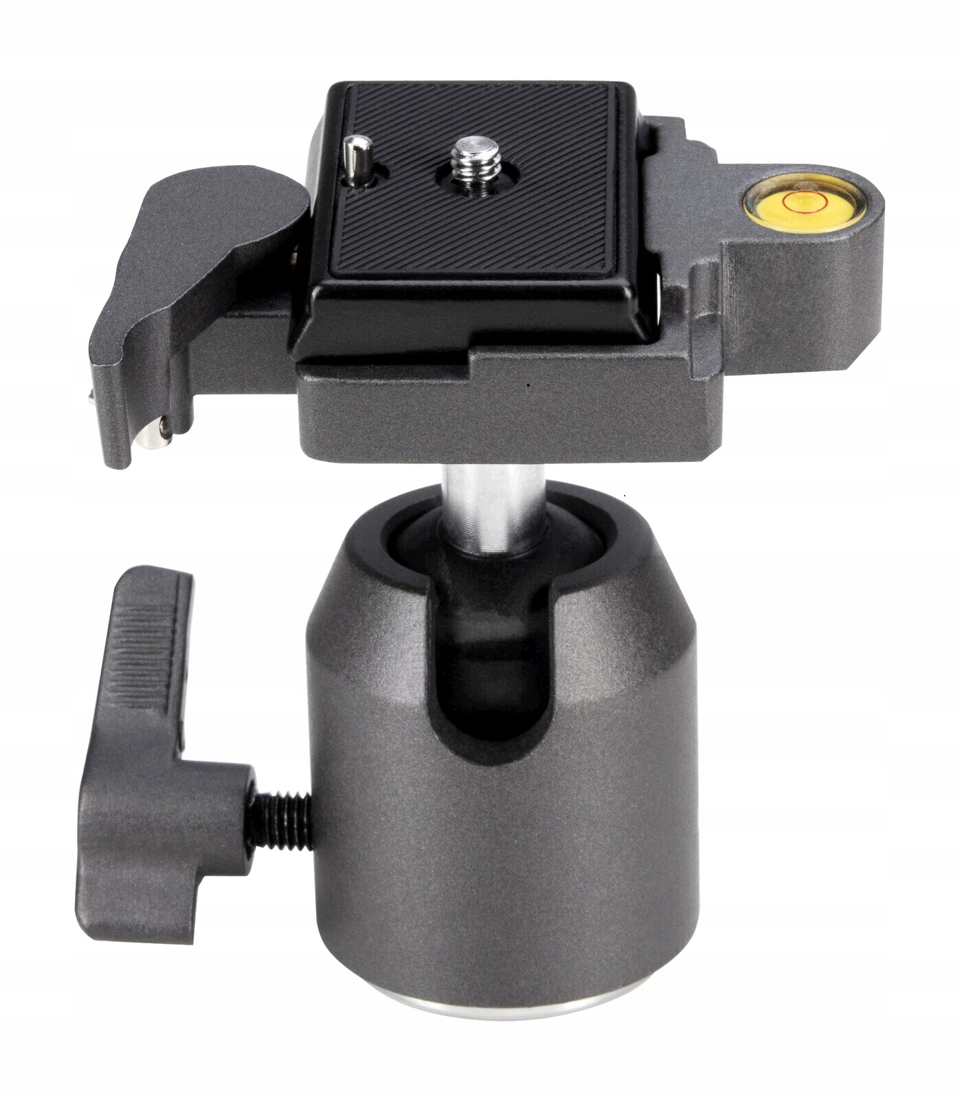 Głowica kulowa H020 z szybkozłączką, podwójną blokadą zapobiegającą wypięciu oraz wbudowaną poziomicą.