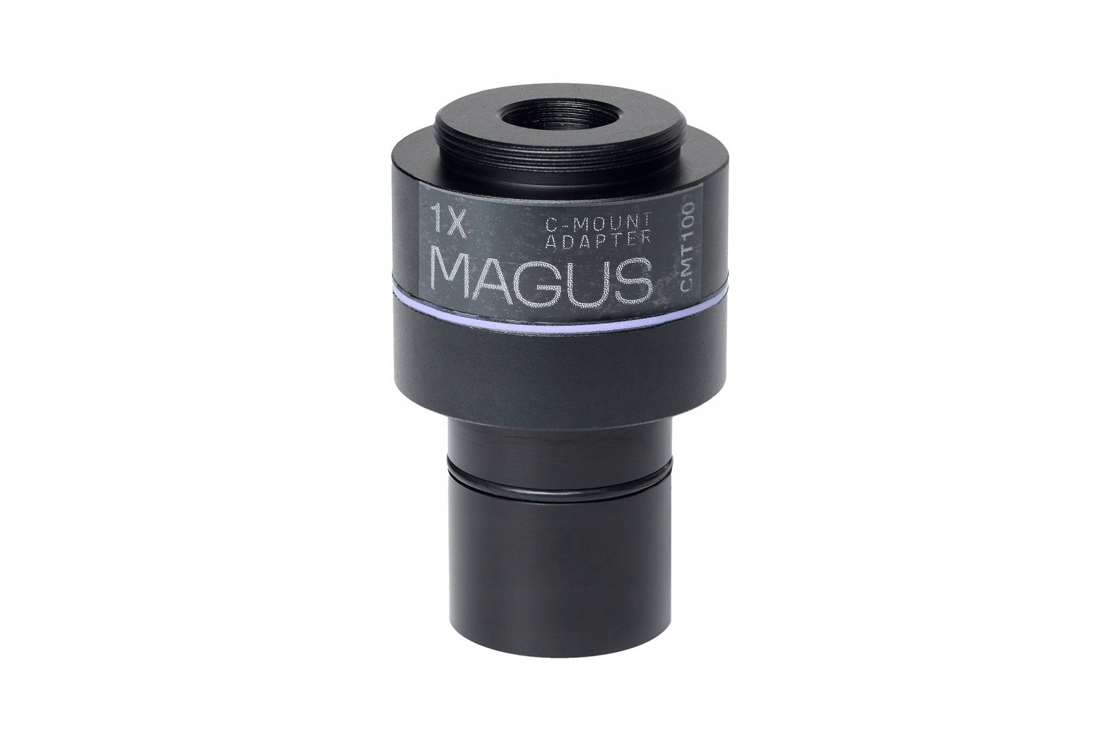 Adapter z montażem typu C to akcesorium, które łączy kamerę cyfrową z mikroskopem. Każdy adapter ma własne parametry powiększenia i jest zgodny z określonymi kamerami. Model CMT100 z powiększeniem 1x jest przeznaczony do matryc o rozmiarze 1" i większych. Największe pole widzenia można uzyskać w połączeniu z następującymi modelami kamer MAGUS: