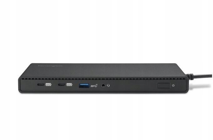 - Stacja ma 5 portów USB do podłączania i ładowania urządzeń, 1 port Gigabit Ethernet oraz 1 złącze audio combo jack.