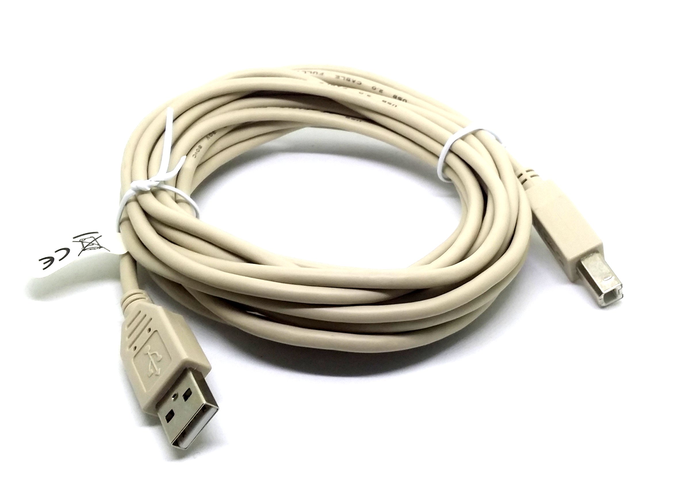Przyłącze kabel USB 2.0 drukarkowy o długości 5 metrów, zakończone wtykiem USB typu A na wtyk USB typu B, wykonane w oparciu o ekranowany przewód, spełniające wymogi standardu USB 2.0 (prędkość transmisji danych).