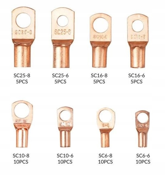 Konektor oczkowy miedziany M6, M8 jest nieizolowany i montowany na kabel.