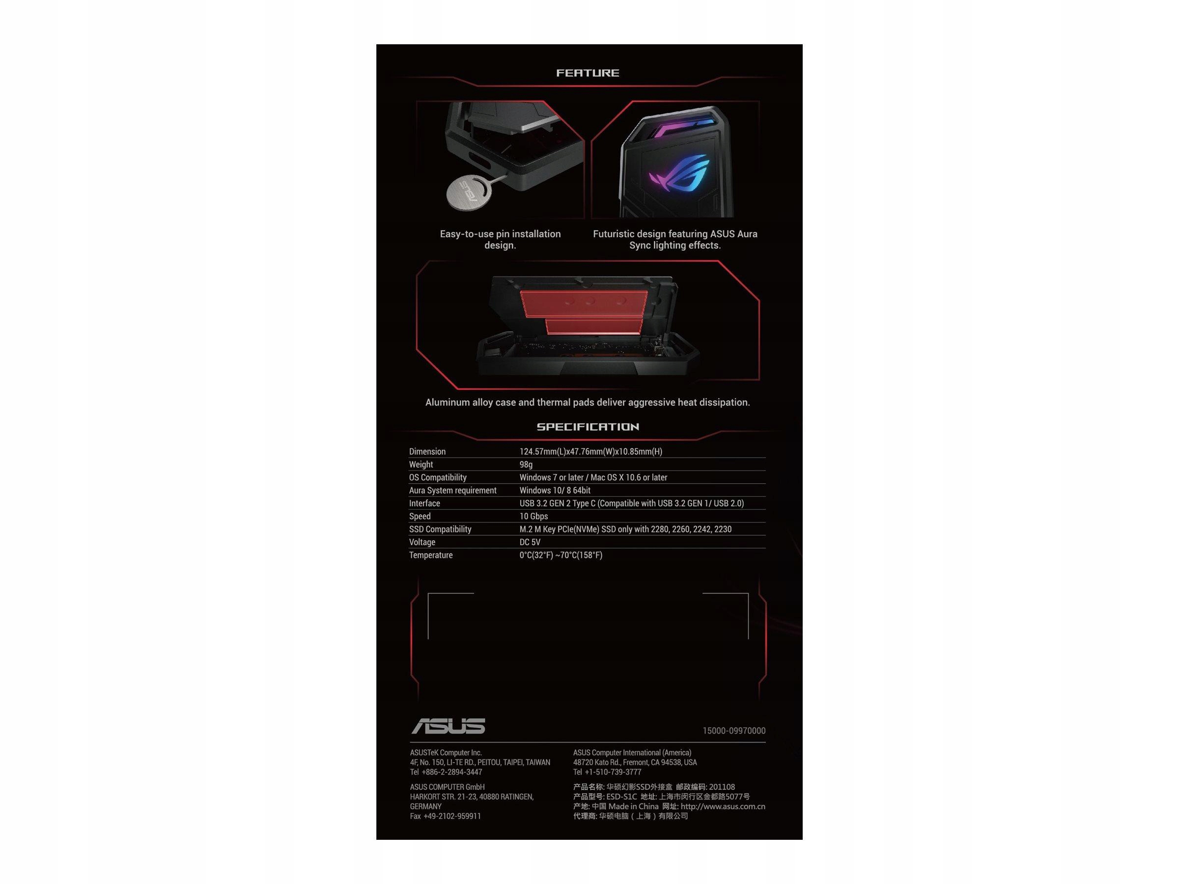 ASUS ROG Strix Arion M.2 NVMe SSD Enclosure-USB3.2 GEN2 Type-C