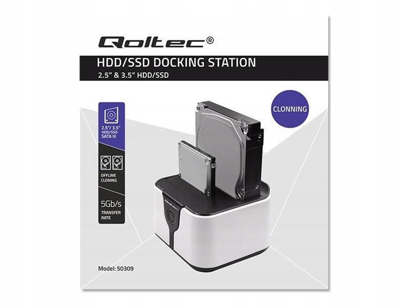 QOLTEC 50309 Stacja dokująca do dysków HDD SSD 2.5 3.5 / SATA III / USB 3.0 / Super speed 5Gb/s / z funkcją Klonowania offline