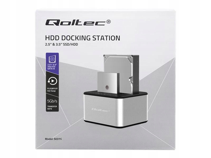 QOLTEC 50316 Stacja dokująca dysków 2x HDD/SSD 2.5/3.5inch SATA USB 3.0 Klonowanie