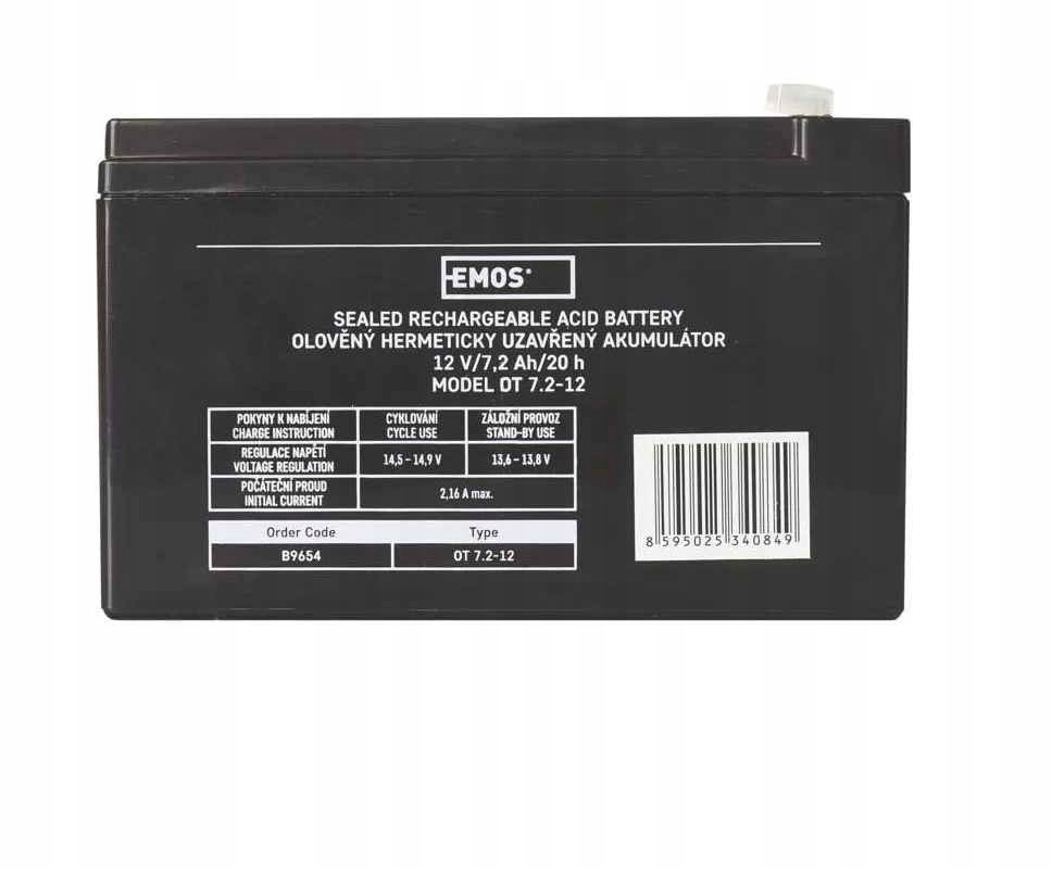 Akumulator B9654 producent EMOS, stosuje się, jako rezerwowe źródło zasilania do systemów elektronicznych – EZS, EPS (centrale Jablotron i Paradox), systemów zasilania rezerwowego wind, samochodzików dla dzieci, itp.Bezobsługowy akumulator ołowiowy z zaworami regulacyjnymi w wykonaniu AGM umożliwiającym użytkowanie go w dowolnym położeniu. Jest wydajny oraz wytrzymały na niekorzystne warunki atmosferyczne. Optymalna żywotność w systemach zasilania rezerwowego wynosi 5 lat. Produkt objęty gwarancją producenta.