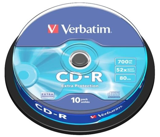 PŁYTA CD-R VERBATIM, 700MB, PRĘDKOŚĆ 52X, CAKE, 10SZT., EKSTRA OCHRONA