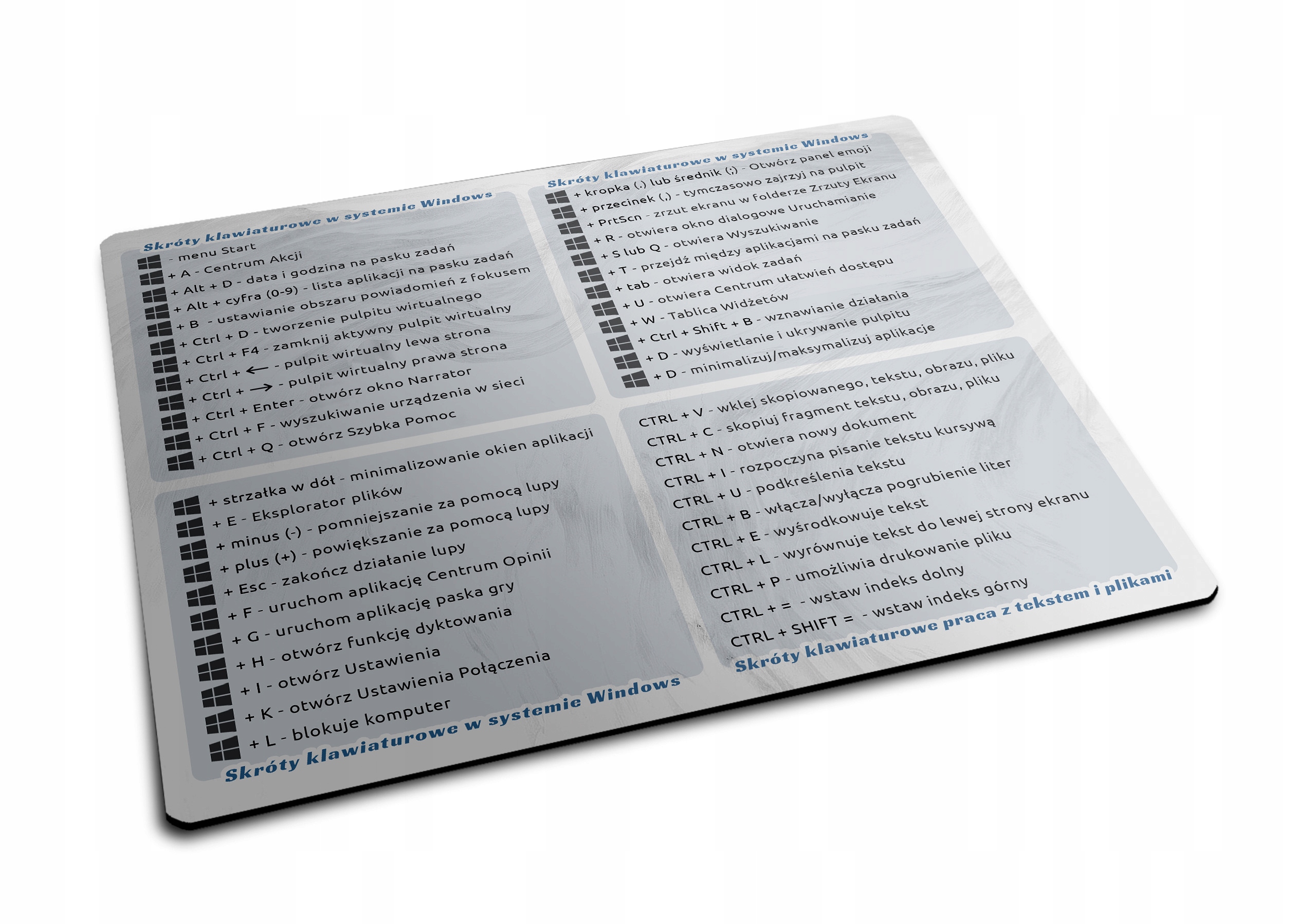 Podkładka pod mysz do pracy biura skróty klawiaturowe WINDOWS.
