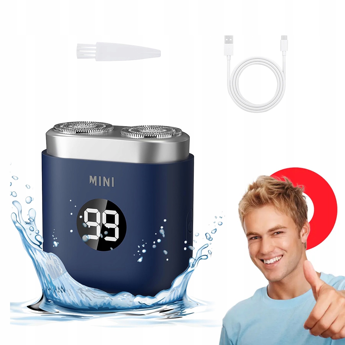 Golarka elektryczna dla mężczyzn TX-1 Mini z cyfrowym wyświetlaczem LED, wodoodporna golarka elektryczna IPX7 Golarka elektryczna dla mężczyzn Męska bezprzewodowa golarka rotacyjna 2 w 1 do twarzy na mokro i na sucho (niebieska)
