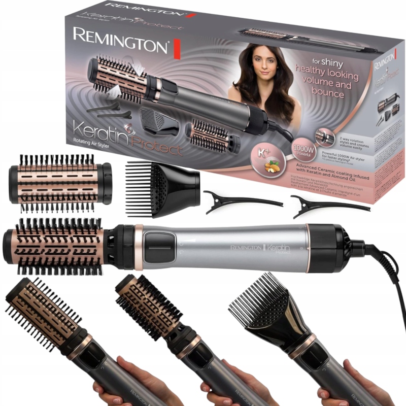 Dzięki 1000-watowej mocy rotacyjna lokówko-suszarka Keratin Protect AS8811 umożliwia suszenie i stylizację włosów. Obraca się zgodnie lub przeciwnie do ruchu wskazówek zegara i posiada 2 stopnie grzania i prędkości.