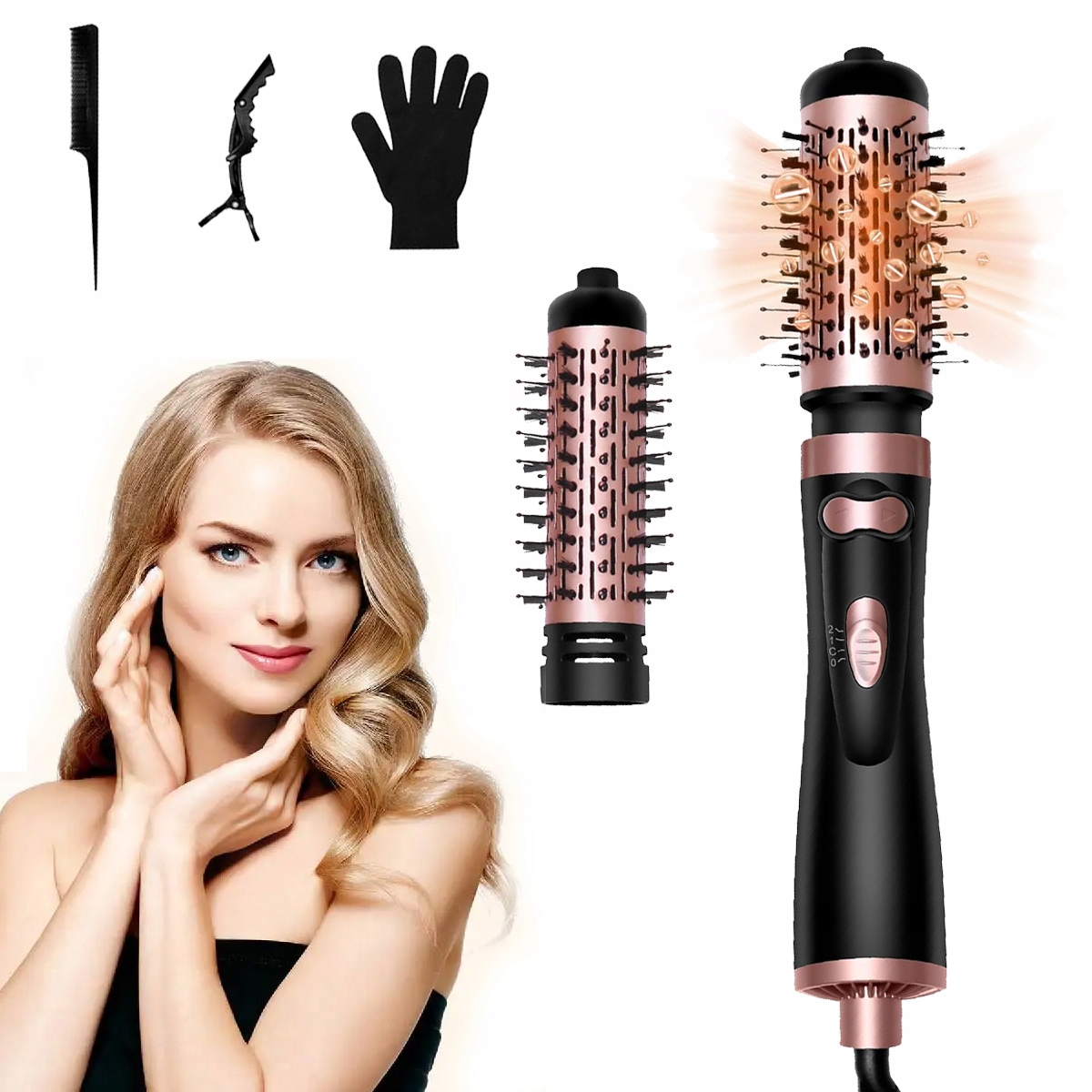 Ta suszarka do włosów jest wyposażona w 2 wymienne, obrotowe szczotki do kręcenia lub prostowania włosów. Termiczna szczotka o średnicy 38 mm przeznaczona jest do kręcenia i rozczochrania włosów. Termiczna szczotka o szerokości 50 mm idealnie nadaje się do prostowania włosów, zapewniając jedwabistą gładkość i umożliwiając stworzenie delikatnych loków na końcach. Ten grzebień na gorące powietrze jest przeznaczony do włosów o różnej długości i idealnie sprawdza się w przypadku włosów średnich i długich. Należy pamiętać, że produkt ten nie nadaje się do bardzo krótkich włosów.