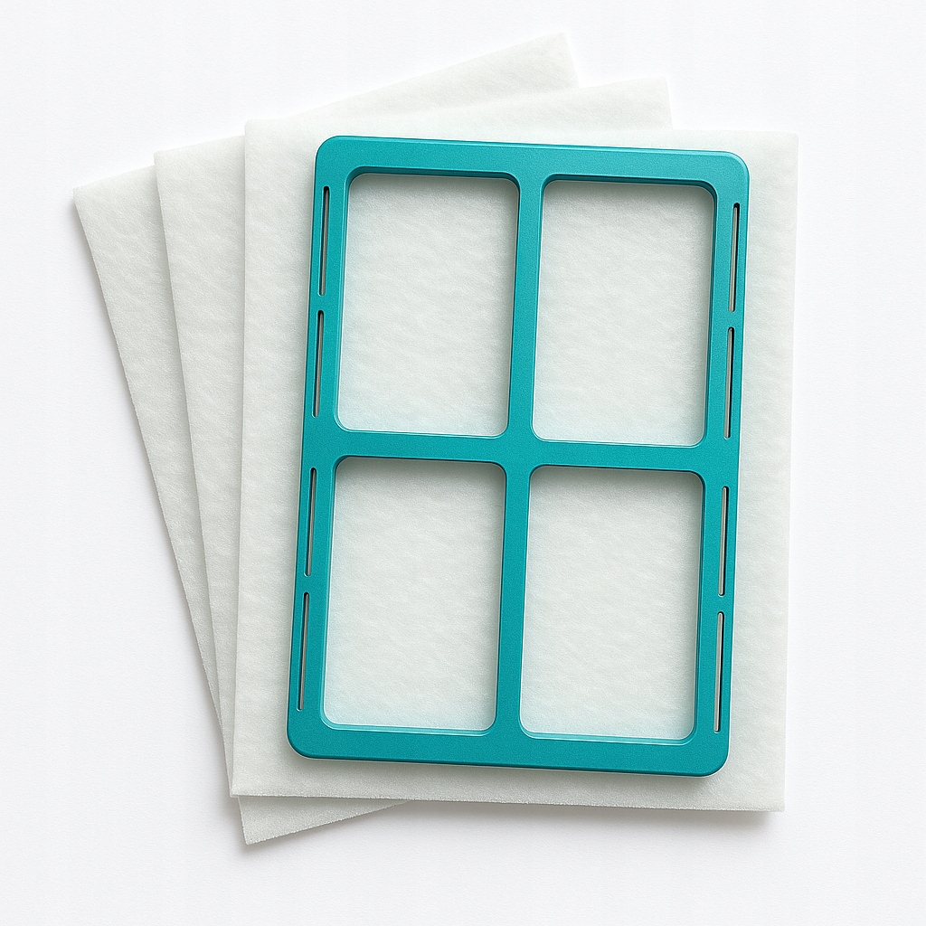 NOWY model ramki 2025 został udoskonalony o wcięcia, które pozwalają na zamontowanie maty filtrującej w samej ramce, filtr można z łatwością zamocować bezpośrednio na niej, co sprawia, że umieszczenie go w suszarce jest szybkie i wygodne.