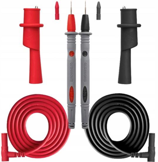 - DUŻA KOMPATYBILNOŚĆ Z MIERNIKAMI – przewody pomiarowe będą pasować do wszystkich uniwersalnych mierników cęgowych, umożliwiając pomiary napięcia do 1000 V.