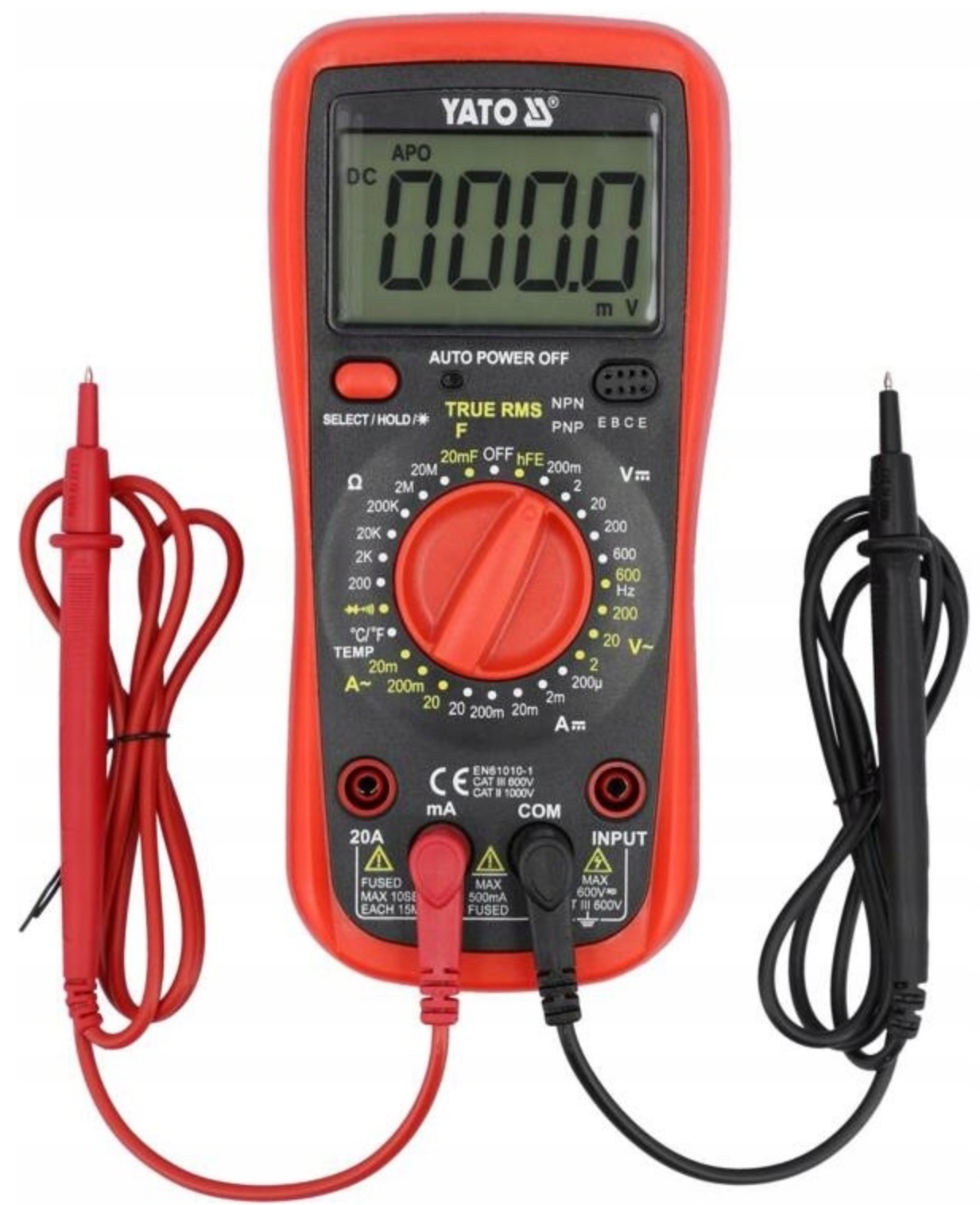 Miernik uniwersalny YT-73083 z funkcją TRUE RMS oraz z ręcznym zakresem dla każdego pomiaru umożliwia wykonanie podstawowych oraz zaawansowanych pomiarów elektrycznych. Pomiar natężenia prądu AC oraz DC do 20 amper wyróżnia multimetr na tle innych urządzeń, a duży ekran z niebieskim podświetleniem sprawi, że wynik będzie widoczny nawet w trudnych warunkach oświetleniowych.