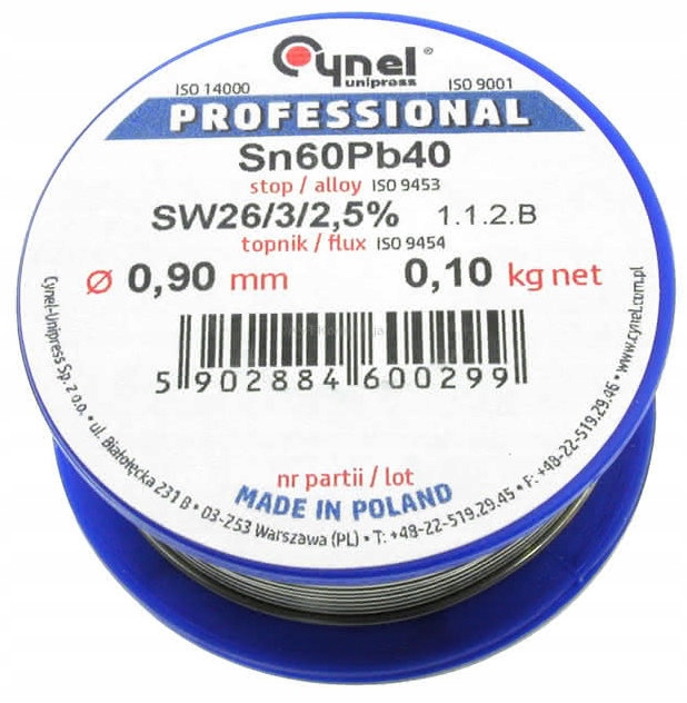 ✅ Spoiwo Pb60Sn40 z topnikiem SW26 zostało wyprodukowane w pierwszym wytopie cyny i ołowiu zgodnie z EN ISO 9453:2014.