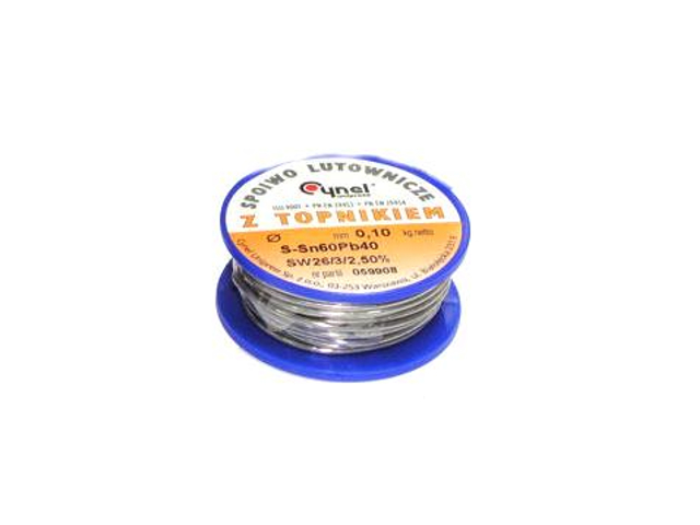 Cyna z topnikiem Sn60Pb40 w opakowaniach o wadze 100 gram.