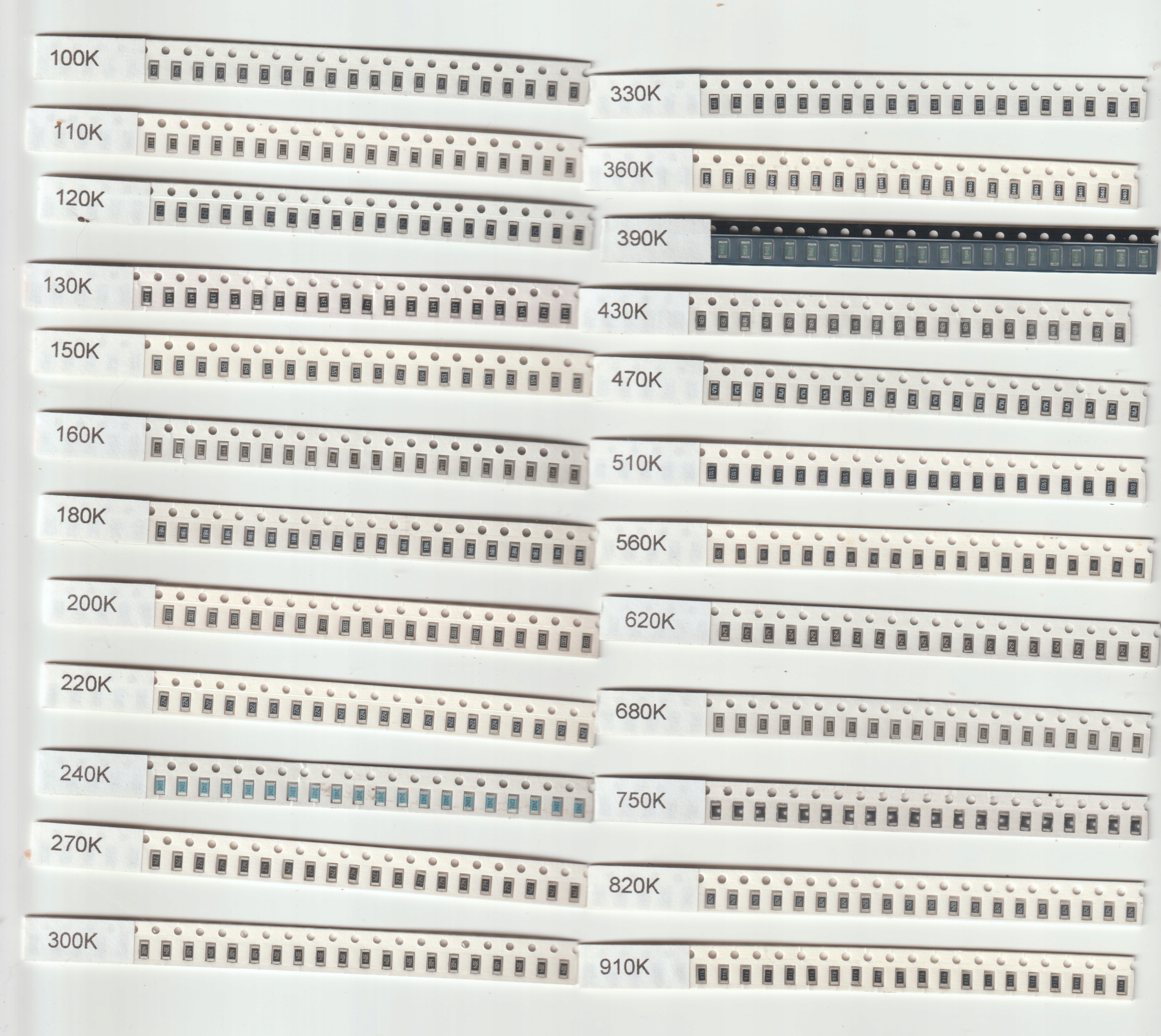 Zestaw rezystorów smd 1206 szereg E-24 (dekada VI) 100K – 910K