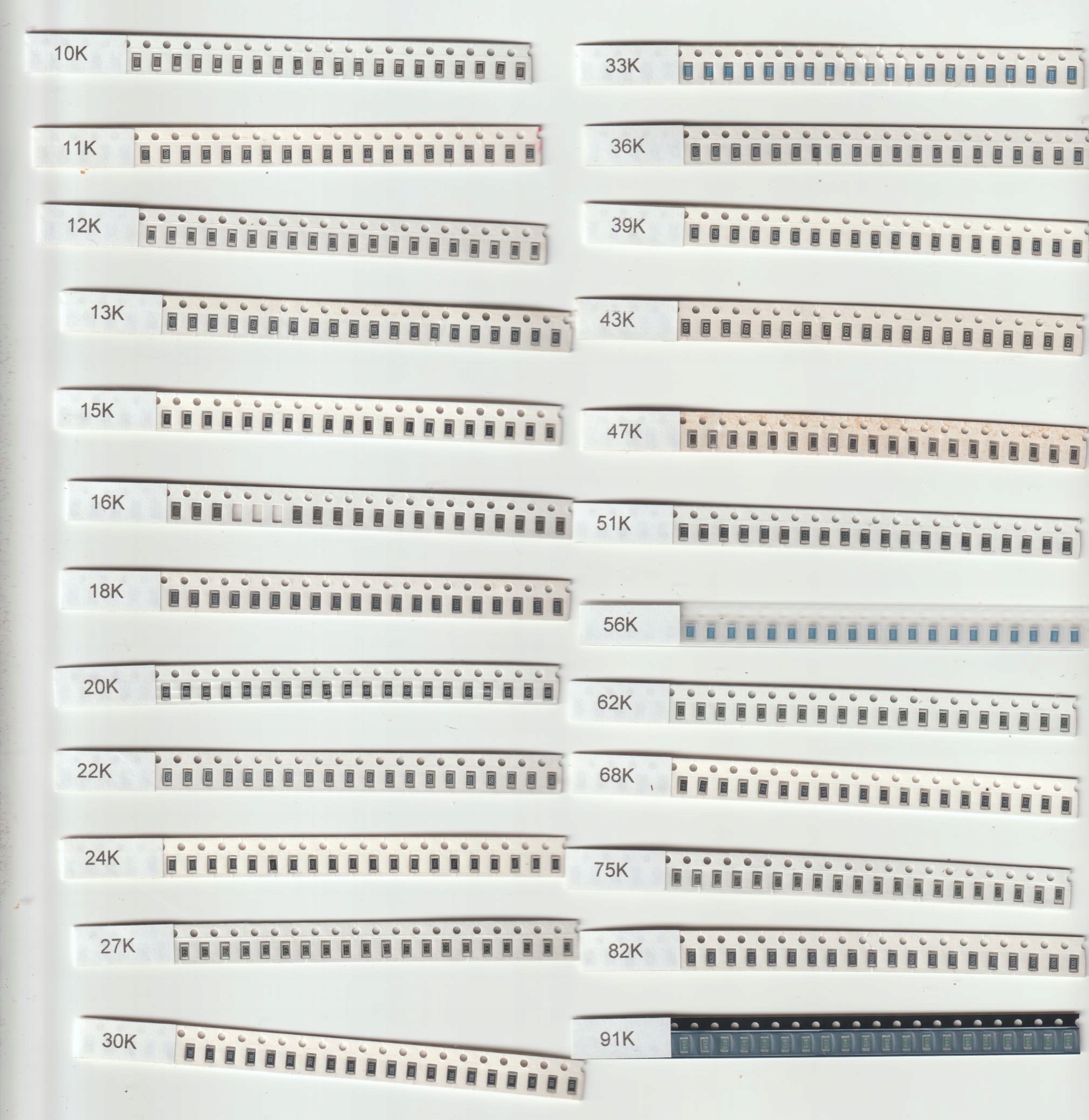 Zestaw rezystorów smd 1206 szereg E-24 (dekada V) 10K – 91K