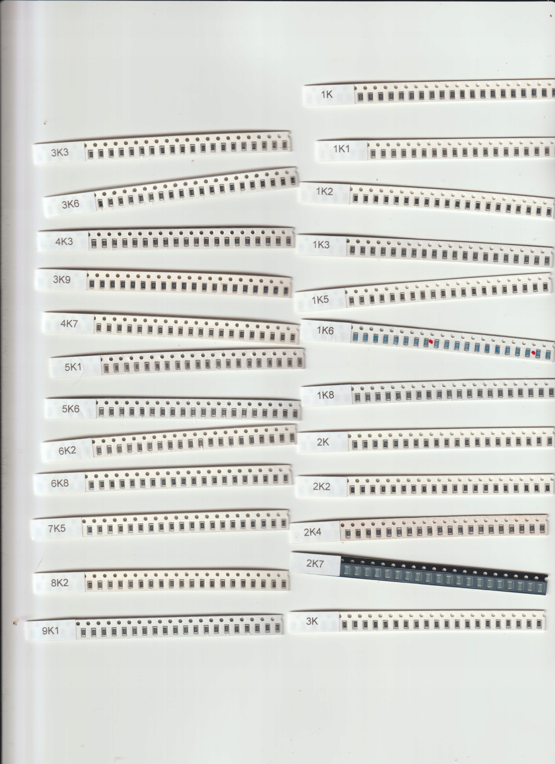 Zestaw rezystorów smd 1206 szereg E-24 (dekada IV) 1K – 9K1