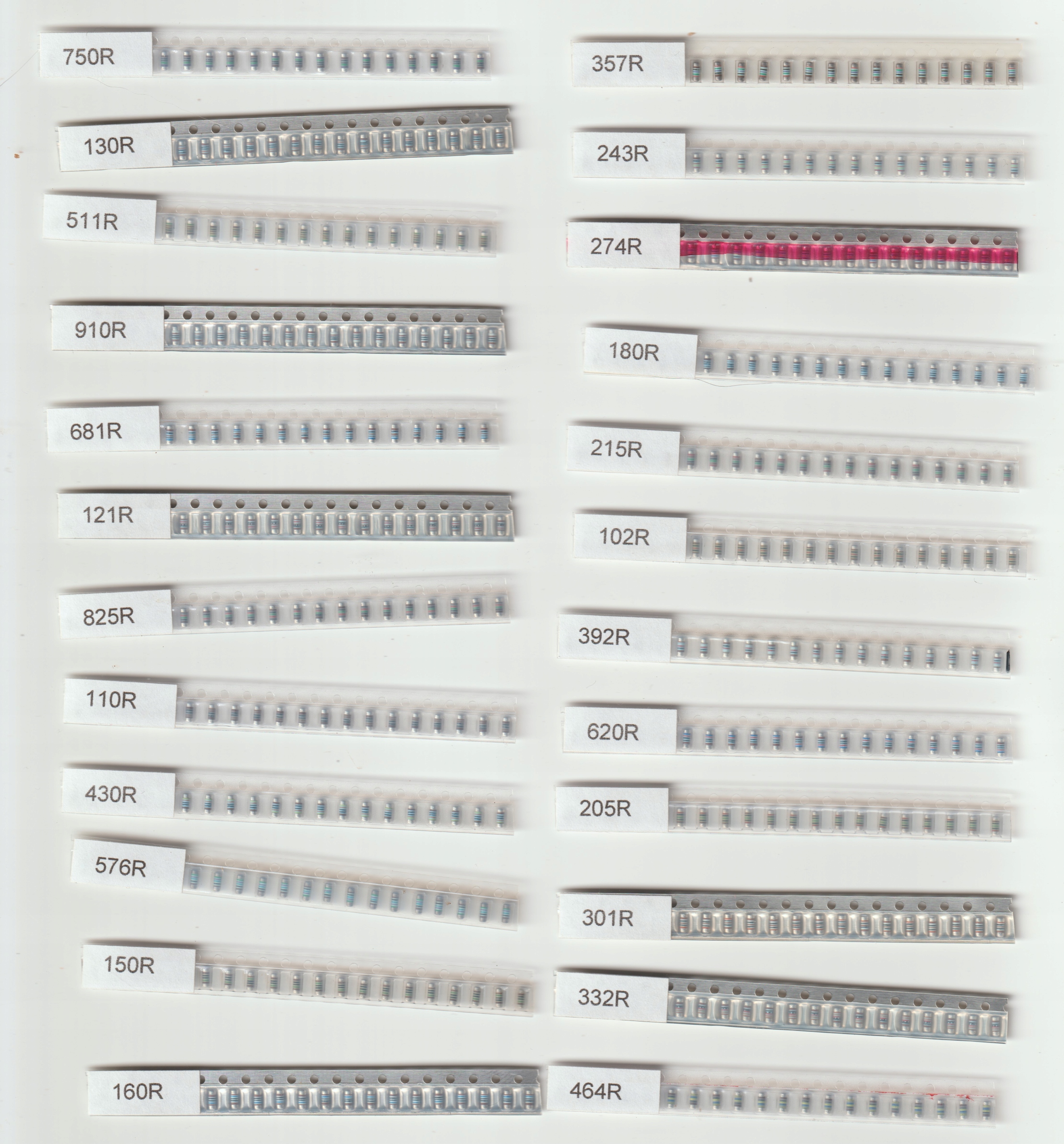 Zestaw rezystorów SMD minimelf 1% 50ppm z zakresu 100R-910R