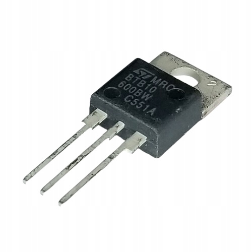 Triak BTB10-600BW produkcji STMicroelectronics – 600V, 10A, 50mA, obudowa TO-220AB.