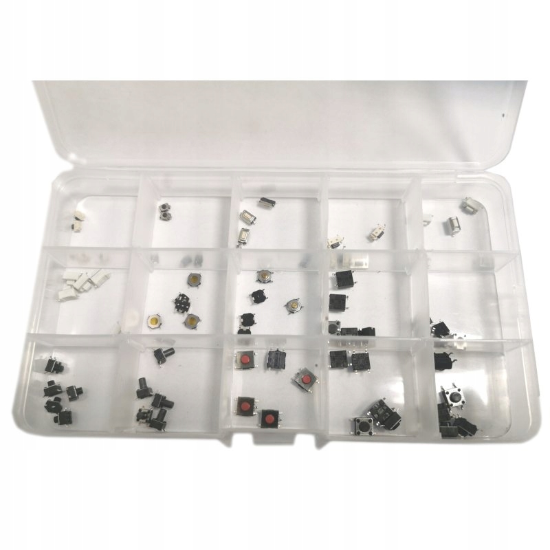 Zestaw 75szt popularnych przycisków tact switch stosowanych w serwisie pilotów, urządzeń itp.