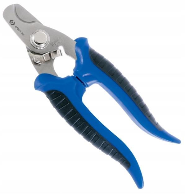 Uniwersalne nożyczki służące do cięcia kabli i przewodów elektrycznych. Ostrze wykonane ze stali nierdzewnej, precyzyjnie wykończone co pozwala na cięcie przewodów bez ich miażdżenia. Specjalnie zaokrąglone szczęki zabezpieczają przewód przed ześlizgnięciem się z ostrza. Nożyczki nie nadają się do cięcia drutu stalowego. Narzędzie posiada blokadę otwarcia, sprężynę rozwierającą oraz gumowe wstawki poprawiające chwyt. Kształt rękojeści zabezpiecza użytkownika przed przyciśnięciem palców. Rączki nożyczek wykonane zostały z wzmocnionego tworzywa sztucznego odpornego na uderzenia.