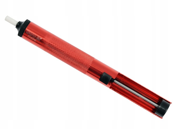 Odsysacz do cyny wykonany z anodyzowanego aluminium. Charakteryzuje się cichą pracą i dużą siłą zasysania. Wymiary 19,5 x 190mm