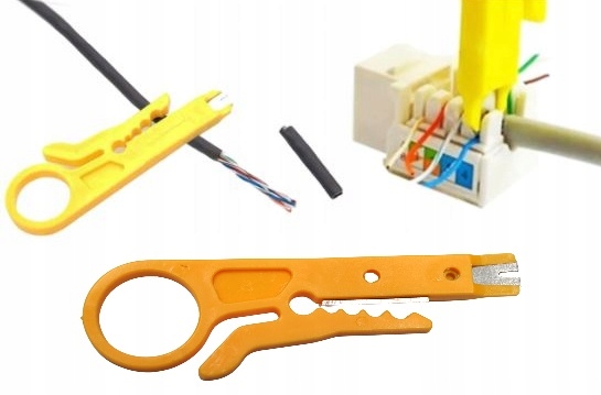 Ściągacz izolacji do kabli typu skrętka, koncentrycznych itd. o różnej grubości. Proste, małe i tanie urządzenie, które niesamowicie ułatwia prace. Wystarczy ściągacz założyć na kabel i wykonać obrót 360 stopni. Narzędzie wykonane z wysokiej jakości plastiku i noża z hartowanej stali. Jego metalowy Dziubek ma zastosowanie do gniazdek, gniazd typu keystone i patch paneli.