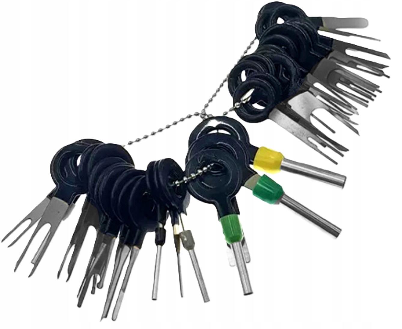Zestaw kluczyków w najpopularniejszych rozmiarach, które zastosujesz do demontażu pinów w samochodzie, ale nie tylko. 38 kluczyków w zestawie.