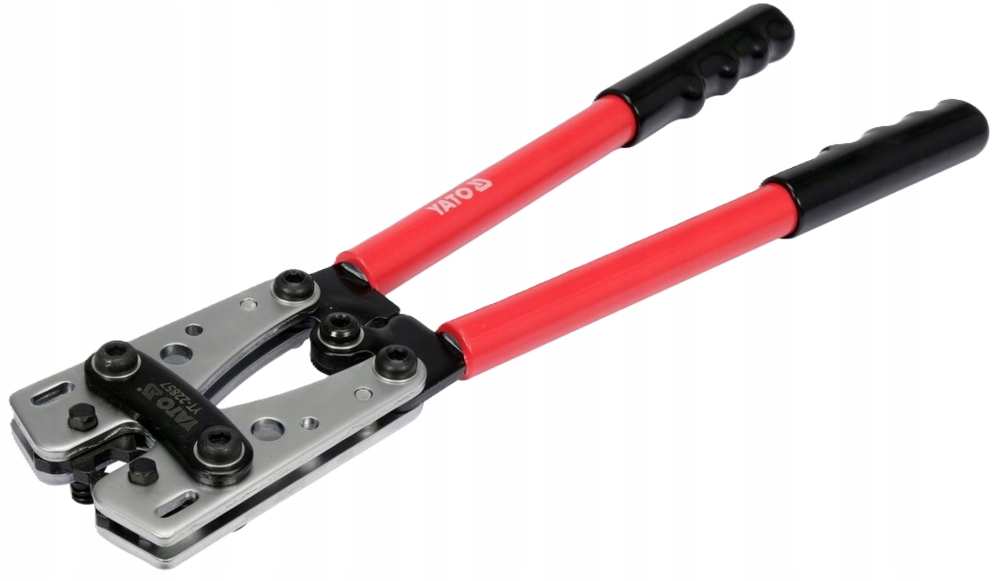 Praska mechaniczna do zaciskania końcówek kablowych nieizolowanych na przewody o przekrojach 6, 10, 16, 25, 35 i 50 mm2. Konstrukcja oparta na przekładni zwiększa siłę zacisku. Obrotowa głowica wykonana z wytrzymałej stali 40Cr. Gumowe antypoślizgowe nakładki na rękojeść ułatwiają pewny chwyt podczas pracy.