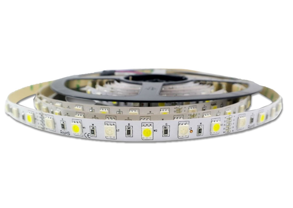 Taśma LED RGBW jest to nowoczesny, rewolucyjny oraz uniwersalny produkt, który charakteryzuje się tym, że na taśmie LED znajdują się diody typu RGB+W, które umieszone są na przemian. Dzięki połączeniu barwy R (czerwony) G (zielony) B (niebieski) oraz W – diody światła białego mamy możliwość uzyskania dowolnego koloru z palety RGB oraz światła białego naturalnego 5050 sterowane oddzielnie. Dzięki czemu uzyskujemy bardziej jednolite kolory.