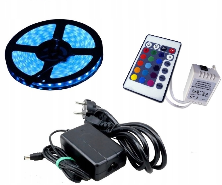 Cena dotyczy: 1 szt. taśmy LED RGB IP68 wraz z pilotem, sterownikiem i zasilaczem.