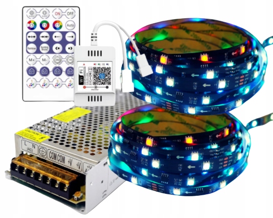 Zestaw taśma LED Magic WS2811 cyfrowa RGB IP20 30D/m wraz z sterownikiem i zasilaczem sterowanie WiFi muzyczne 10m