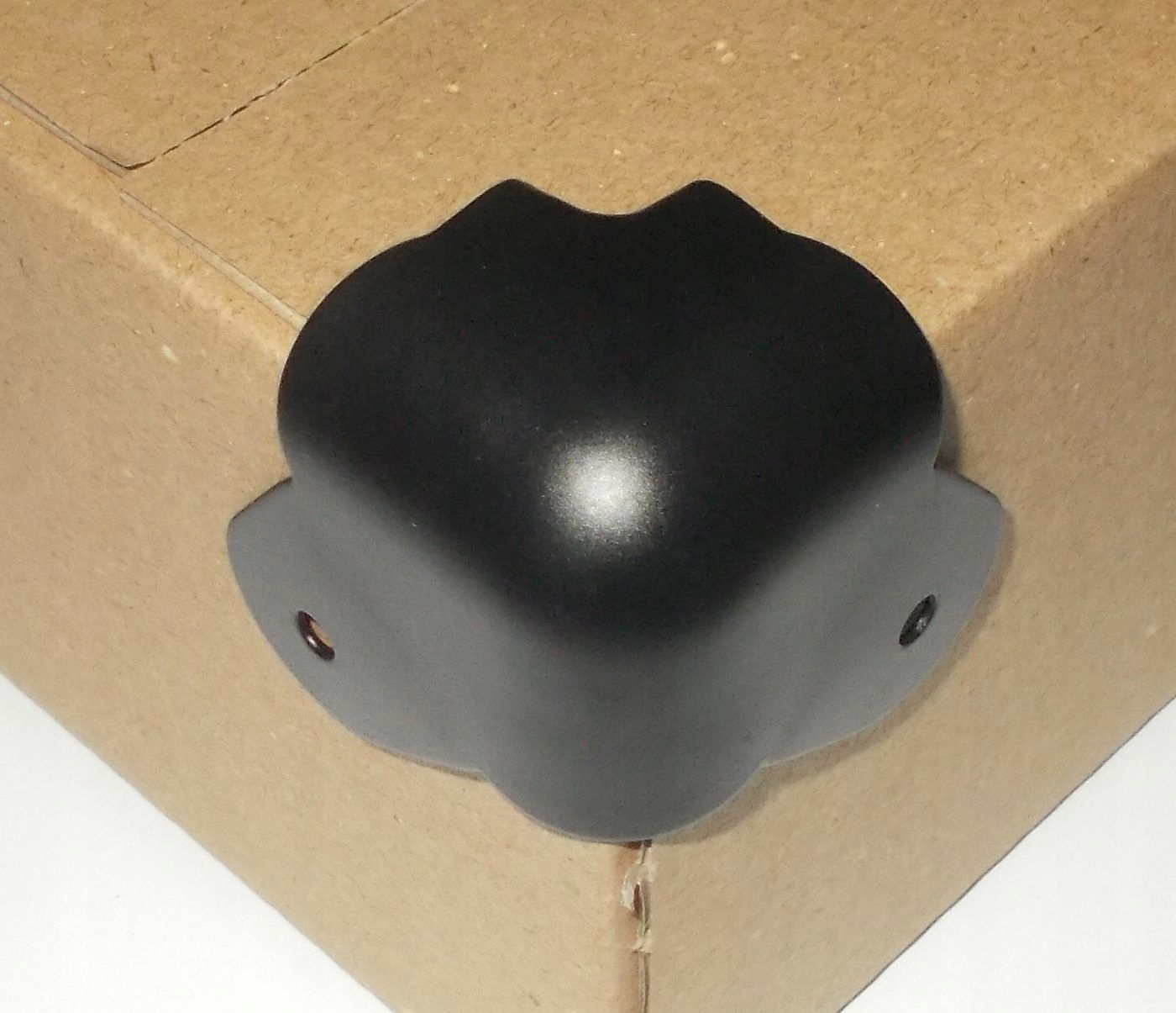 Komplet 4 sztuk narożników do kolumn głośnikowych metalowych w kolorze czarnym.