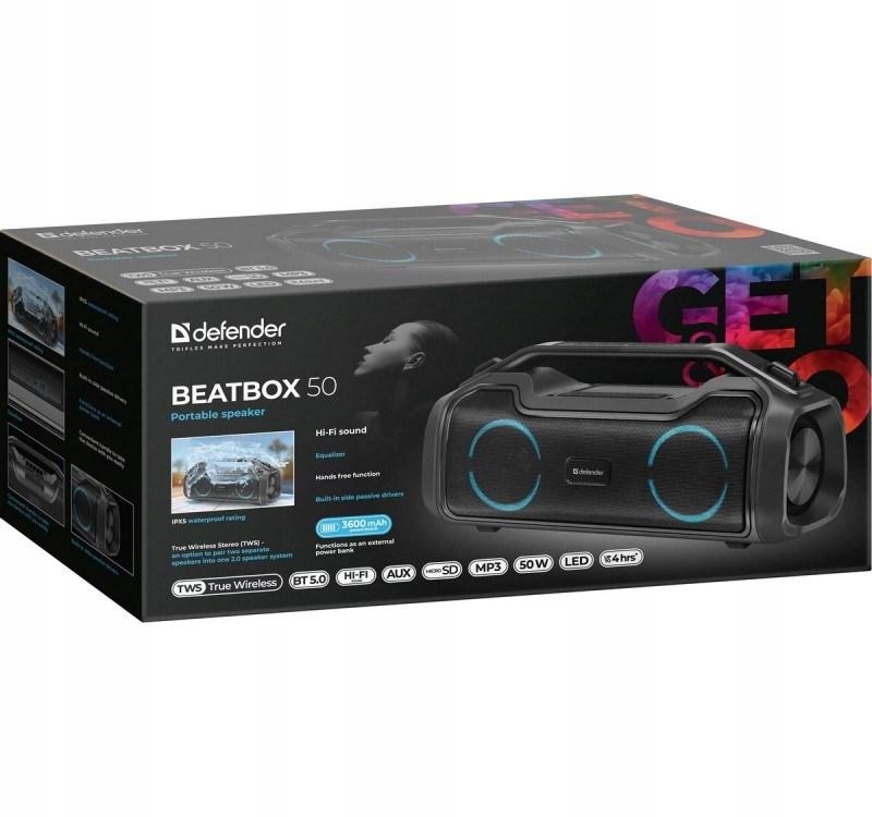 DEFENDER GŁOŚNIK BEATBOX 50 BLUETOOTH 50W BT/RGB/TF/TYPEC/IPX5/PWB 65950