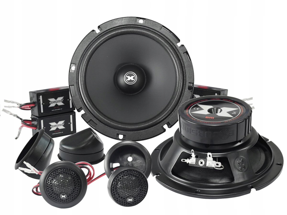 Samochodowy 2-drożny zestaw głośników odseparowanych z mid-wooferami o średnicy 165 mm z serii Street eXcursion (SX) niemieckiej marki Excursion. Zestaw prezentuje bardzo dojrzały i dynamiczny charakter brzmienia, jaki często oferują znacznie droższe produkty. Jest to możliwe dzięki temu, że w głośnikach z serii SX zastosowano szereg sprawdzonych naturalnych materiałów, technologii i rozwiązań, które od wielu lat są uznawane za jedne z najlepszych dla tego rodzaju produktów oferowanych przez renomowanych producentów z branży Home i Car Audio, często również w modelach pozycjonowanych w dużo wyższej klasie. Należą do nich między innymi sztywne i lekkie membrany mid-wooferów ADC z 2-warstwowego prasowanego papieru zaimpregnowanego przed wilgocią specjalną substancją antyrezonansową poprawiająca brzmienie oraz wysokiej jakości głośniki wysokotonowe z kopułkami 25 mm wykonanymi z naturalnego jedwabiu, które w tym przedziale cenowym są praktycznie bez konkurencji. Nie od dziś wiadomo, że właśnie papierowe membrany mid-wooferów zapewniają najbardziej dynamiczne, wierne oraz naturalne brzmienie niskich i średnich zakresów pasma akustycznego, a jedwabne kopułki tweeterów dostarczają detalicznych wysokich tonów o przyjemnej barwie. Za prawidłowy napęd membran mid-wooferów odpowiadają wydajne układy magnetyczne posiadające centralne otwory ograniczające kompresję i wentylujące cewki drgające, które zostały nawinięte miedzianym drutem na lekkich aluminiowych karkasach. Na uwagę zasługują także stabilne stalowe kosze z symetrycznie rozłożonymi otworami pod dolnym zawieszeniem, których zadaniem jest dodatkowe wspomaganie systemu chłodzenia. Dzięki temu głośniki są bardziej odporne na obciążenia wyższą mocą, co przekłada się na ich długą i bezawaryjną eksploatację. W zestawie znajdują się także 4 oddzielne dla każdego głośnika zwrotnice pasywne Inline Plug&Play o bardzo małych wymiarach ułatwiających montaż. Zostały wyposażone w wysokiej jakości podzespoły oraz zapewniają dużą elastyczność montażu i szeroki zakres konfiguracji połączeń. Te małe pasywne filtry są idealnym rozwiązaniem pozbawionym całego niepotrzebnego balastu akcesoriów i gadżetów, który tylko nadmiernie "obciążałby" dźwięk i portfel. W efekcie końcowym otrzymujemy bardzo dobrze brzmiący zestaw głośnikowy, którego sekcja średnio-wysokotonowa obfituje bogactwem detali i szczegółów tworzących czysty i wyraźnie odczuwalny przestrzenny obraz dźwiękowy osadzony na solidnym i mocnym fundamencie basowym budowanym przez głośniki średnio-niskotonowe (mid-woofery). Takich materiałów, rozwiązań, jakości wykonania i brzmienia nie oferuje większość konkurencyjnych głośników o porównywalnym rozmiarze i w podobnej cenie. Sprawia to, że głośniki Excursion z serii SX są niemal bezkonkurencyjne w swojej klasie i od wielu lat należą do grupy najczęściej sprzedawanych głośników przez sprzedawców detalicznych w Europie. Doskonale sprawdzają się w popularnych amatorskich systemach car Hi-Fi, jako znakomite wejście w świat niedrogiego, ale już markowego car audio, a także jako bardzo dobrze brzmiące zamienniki samochodowych głośników fabrycznych (OEM) w przystępnej cenie.
