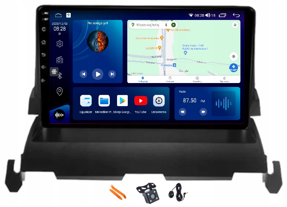 - Pełne okablowanie niezbędne do prawidłowego połączenia z oryginalną instalacją w samochodzie, w tym moduł CANBUS, jeśli jest wymagany.