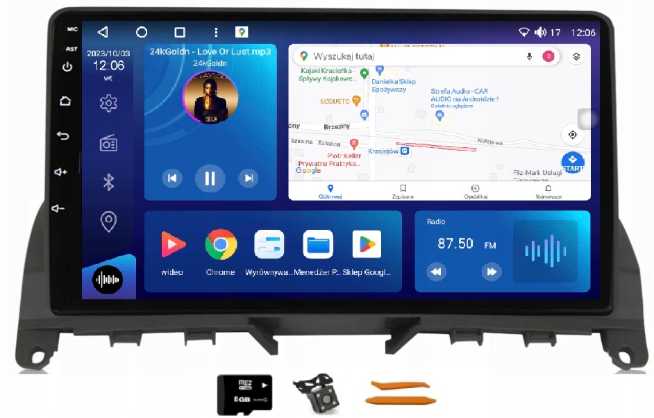- Pełne okablowanie niezbędne do prawidłowego połączenia z oryginalną instalacją w samochodzie, w tym moduł CANBUS, jeśli jest wymagany.