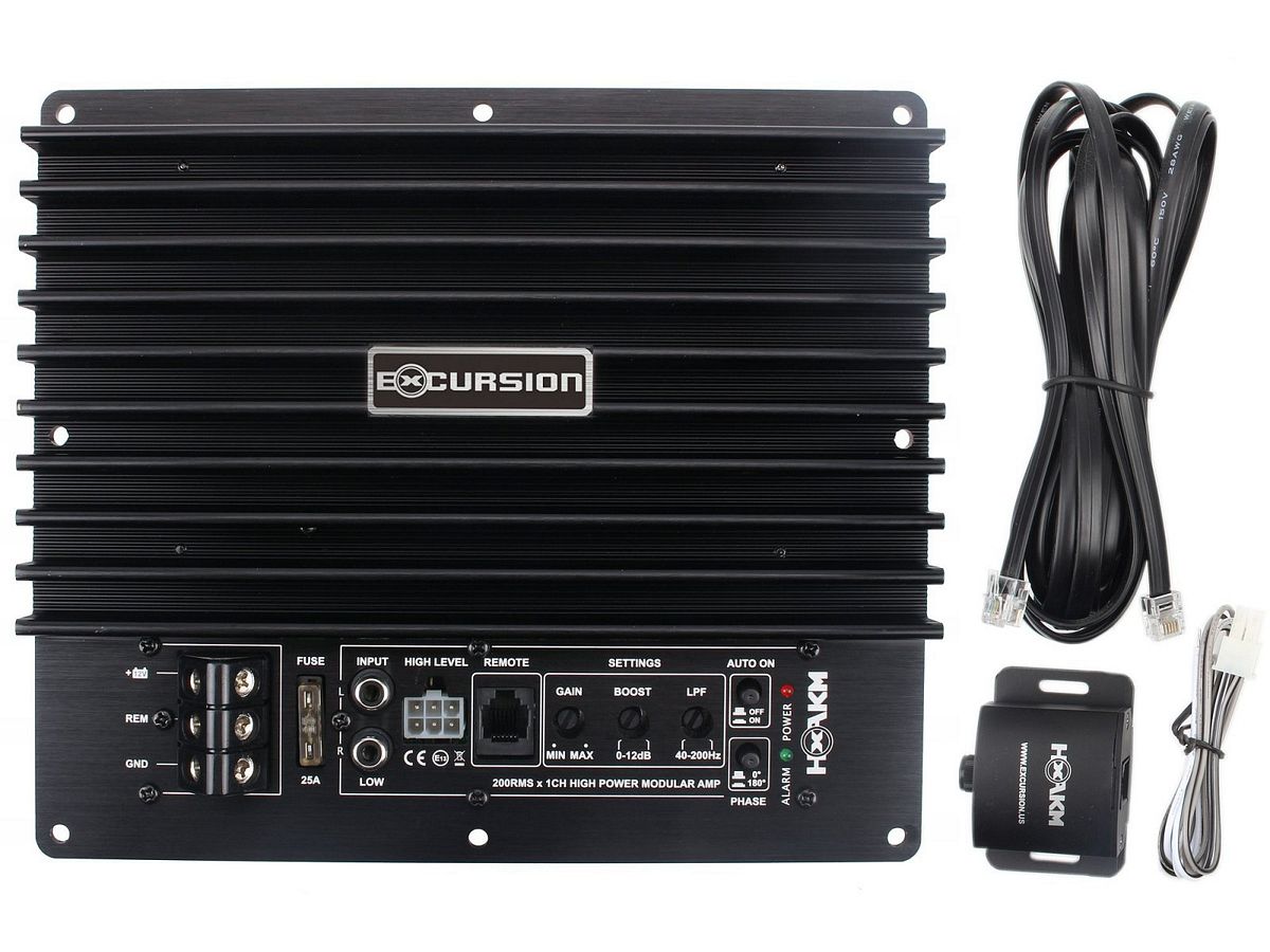 Moduł z 1-kanałowym wzmacniaczem o mocy 120/200W (4Ω/2Ω) wraz z niezbędnym wyposażeniem regulacyjnym przeznaczony do łatwej zabudowy w wyciętym prostokątnym otworze, np w boczku bagażnika samochodu. Moduł posiada uszczelnione wszystkie złącza i regulatory przedniego panelu, dzięki czemu bardzo dobrze nadaje się również do zamontowania bezpośrednio w ściance obudowy (skrzyni) subwoofera pasywnego, zamieniając go w subwoofer aktywny oszczędzający sporo miejsca w samochodzie. W zestawie znajduje się zdalny regulator głośności subwoofera z przewodem.