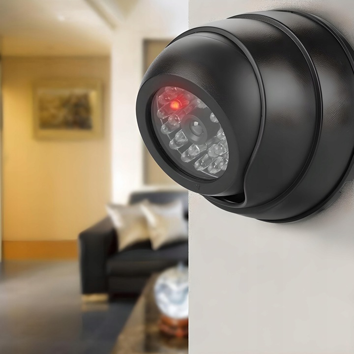 - Realistyczny wygląd: Solidne wykonanie sprawia, że atrapa wygląda jak prawdziwa kamera monitoringu, co skutecznie odstrasza potencjalnych intruzów.