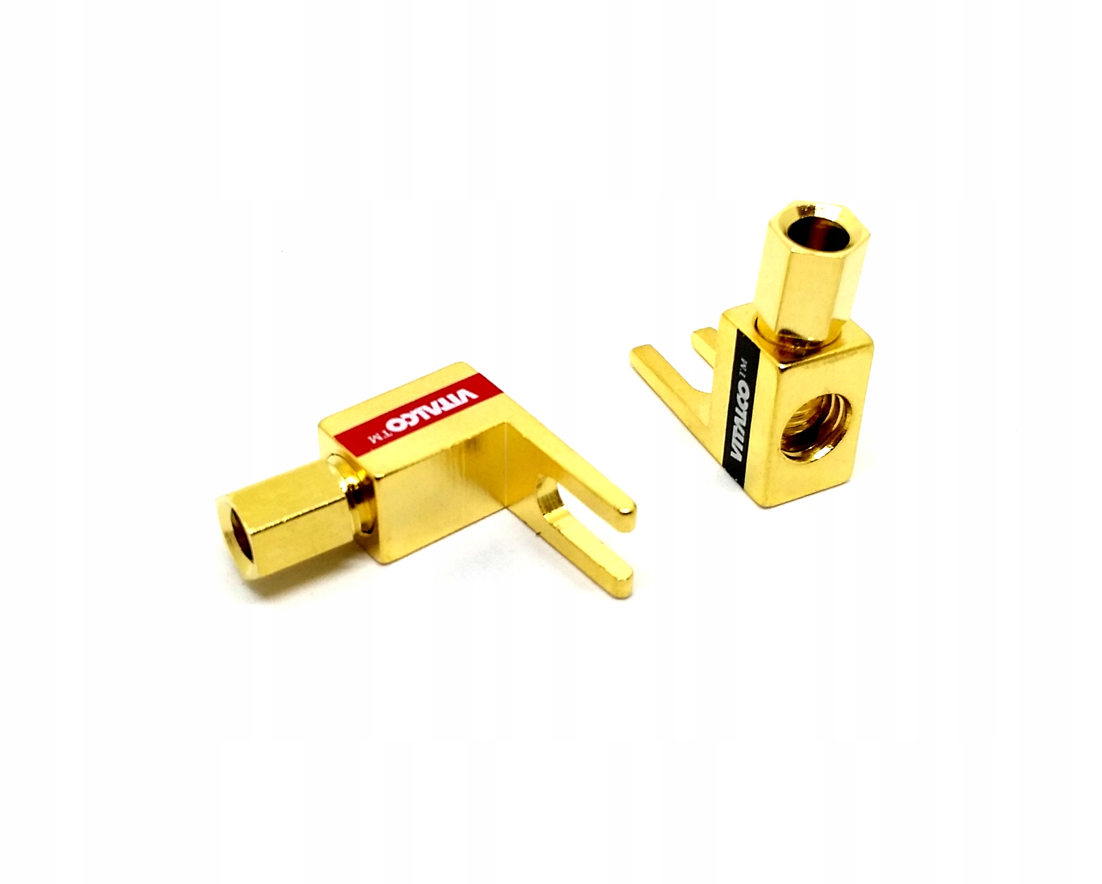 Komplet wysokiej jakości 2 wtyków KOLUMNOWYCH przeznaczonych do montażu na kablu głośnikowym lub pomiarowym (w komplecie znajdują się wtyki w 2 różnych oznaczeniach kolorowych, czarnym oraz czerwonym).