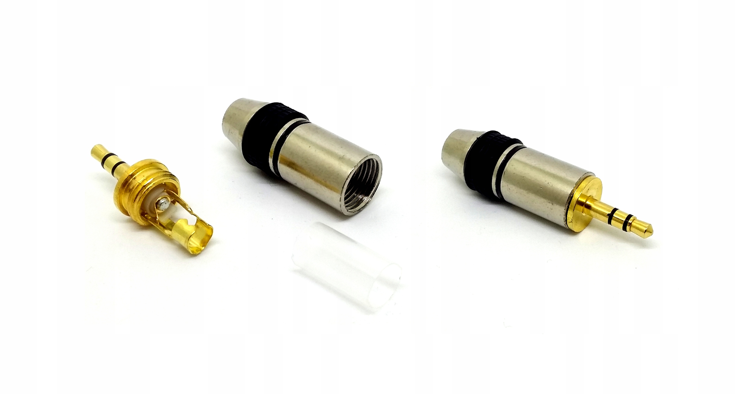 Wysokiej jakości pozłacany wtyk mały JACK 3,5mm STEREO przeznaczony do montażu, lutowania na przewodzie, kablu koncentrycznym.