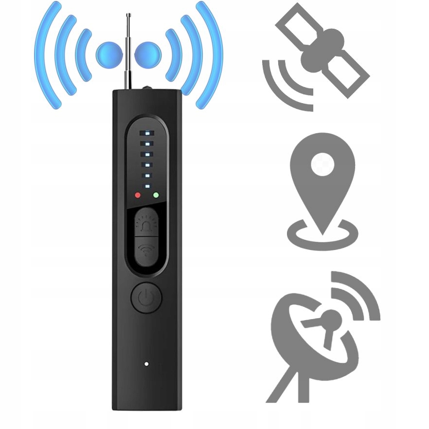 Profesjonalny mini detektor urządządzeń szpiegowskich. Dzięki zaawansowanym chipom, łatwo i szybko wykrywa ukryte kamery bezprzewodowe, nadajniki VHF/UHF, pasma GSM, lokalizator GPS GSM/3G/4G, sygnały pola magnetycznego itp.