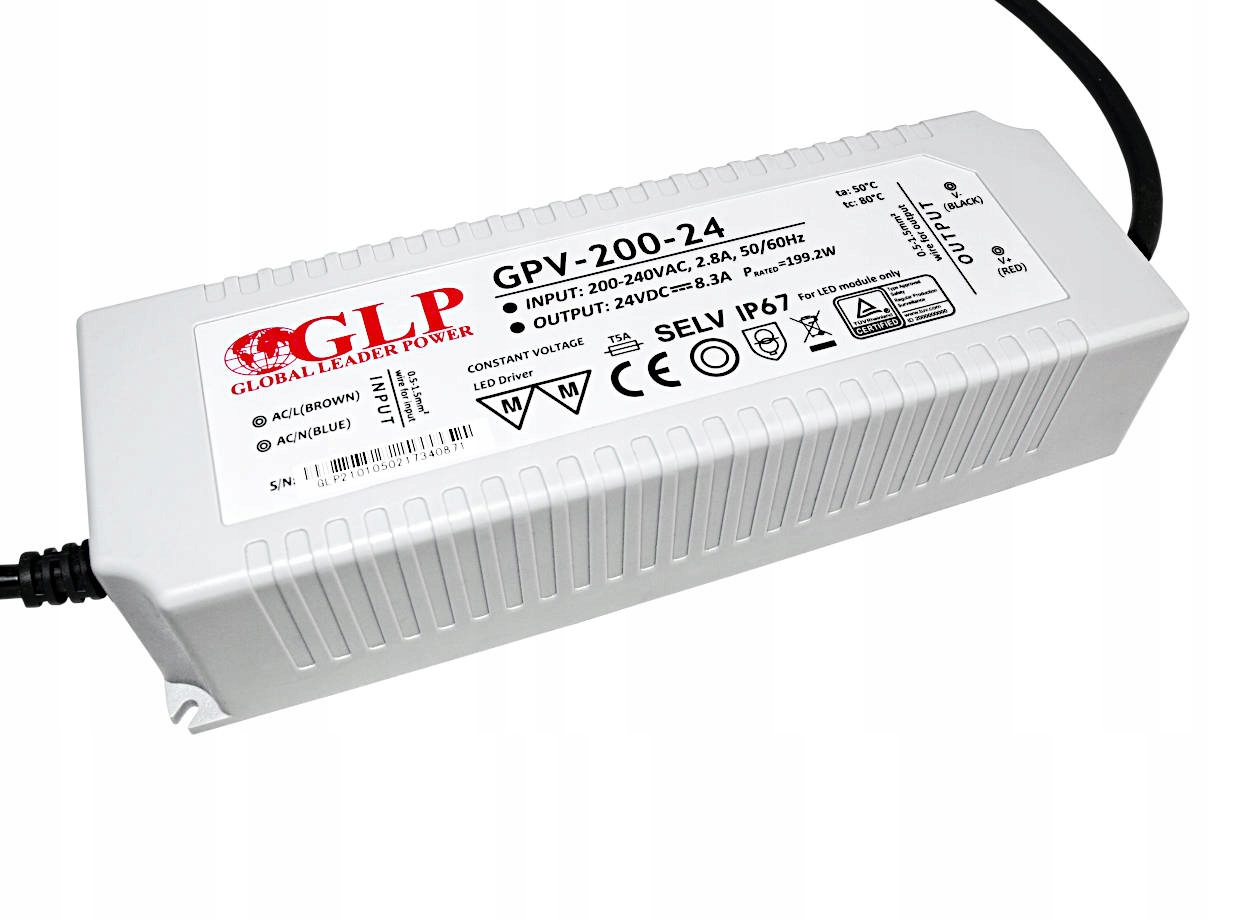 Zasilacz GLP serii GPV 24V/8,3A to niezawodne urządzenie o mocy 199,2W, zapewniające stabilne napięcie 24V. Dzięki szerokiemu zakresowi napięcia wejściowego (200-264Vac) oraz częstotliwości (47-63Hz), zasilacz ten doskonale sprawdza się w różnorodnych zastosowaniach. Jego kompaktowe wymiary 205 x 70 x 45mm sprawiają, że jest łatwy w montażu i idealny do instalacji w miejscach o ograniczonej przestrzeni.