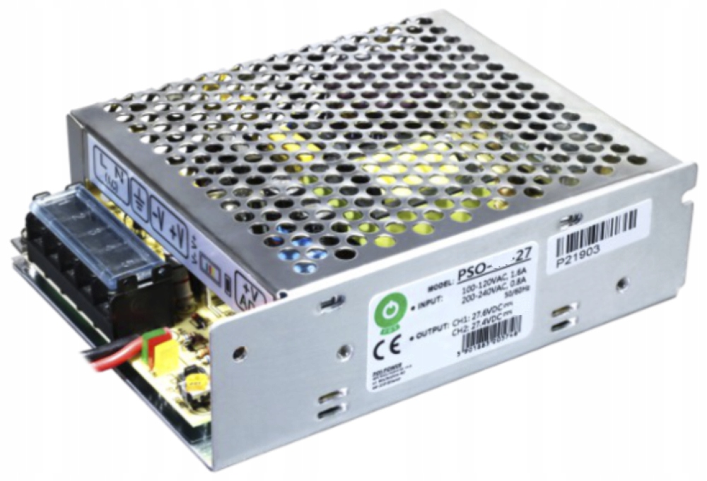 PSO-35-27 Impulsowy zasilacz buforowy, dedykowany do zasilania urządzeń 24 V DC, których pobór prądu nie przekracza 1,2 A. Zasilacz jest zasilaczem uniwersalnym i znajduje zastosowanie w rozwiązaniach systemów CCTV, SSWiN, KD, wideodomofonów i nie tylko.