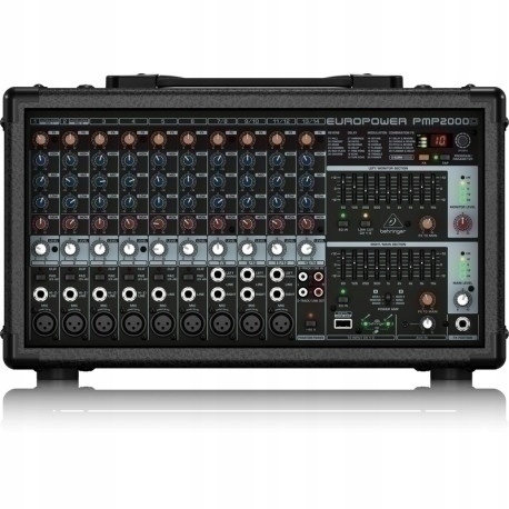 Behringer PMP2000D EUROPOWER – 14-kanałowy mikser ze wzmacniaczem o mocy 2000 W, procesorem efektów od Klark Teknik i opcją pracy bezprzewodowej.