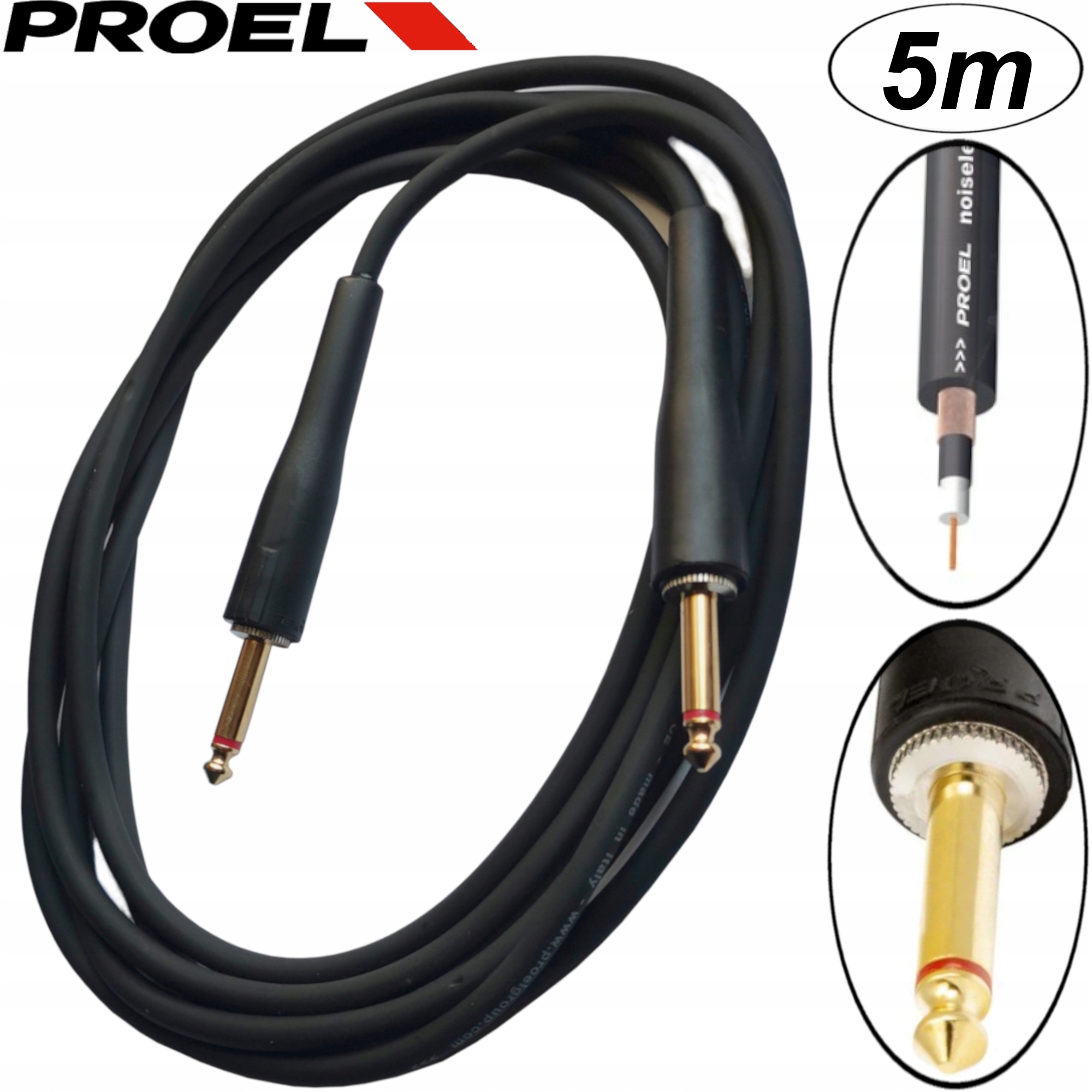 Gitar-Kolor 5 m czarny przewód instrumentalny 2xJack M złocone złącza Proel