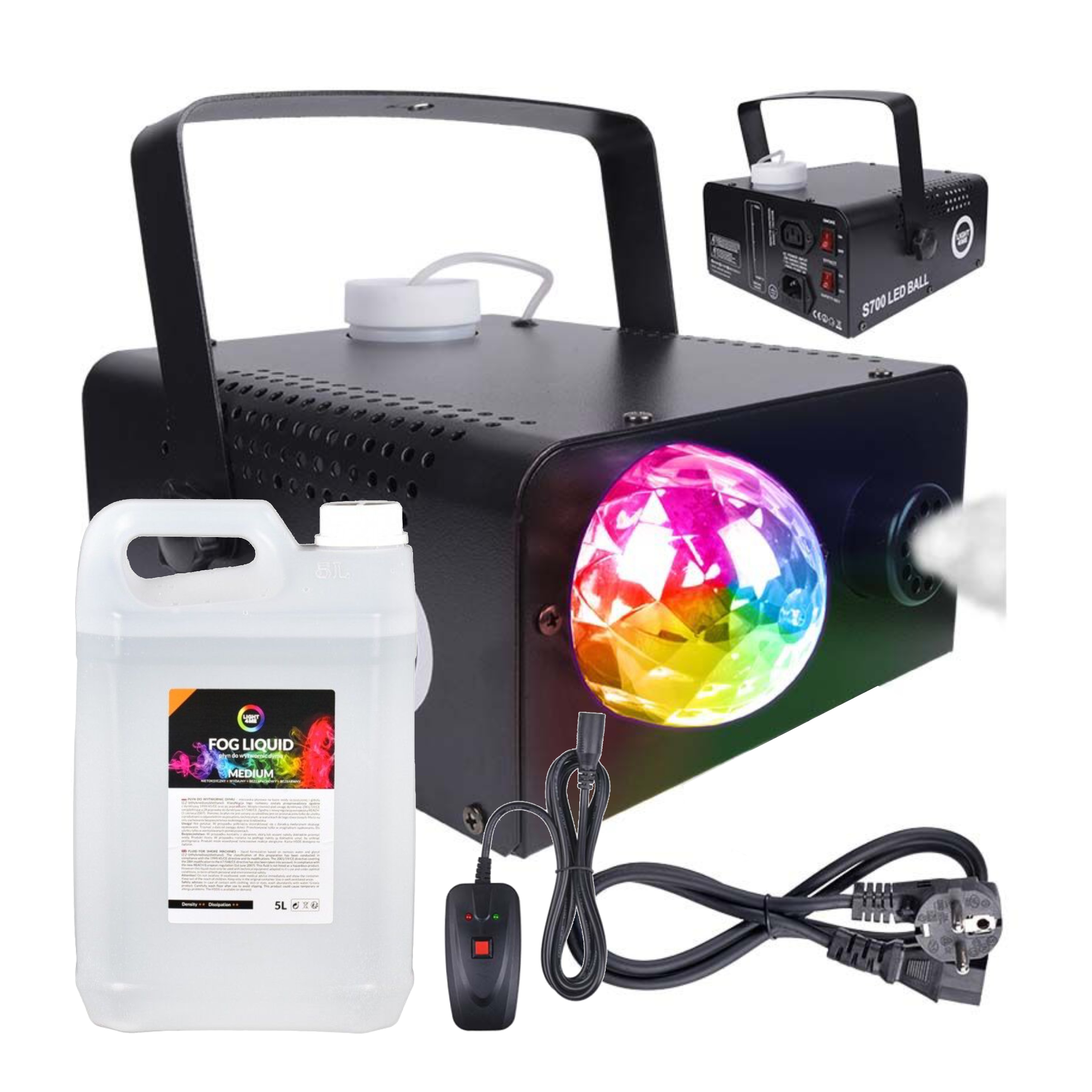 LIGHT4ME S 700W LED BALL – kompaktowa wytwornica dymu z efektem flower LED + płyn 5L w zestawie
