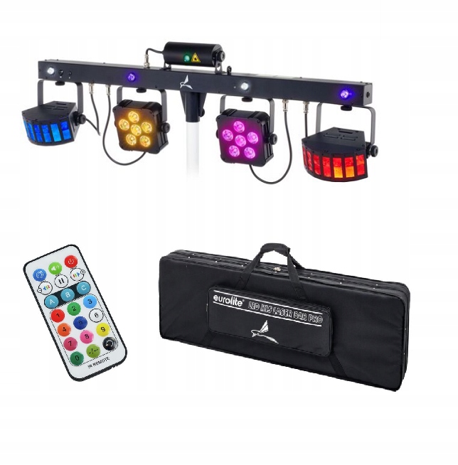 - 4 w 1: laser, Derby, punkty i stroboskop: Zestaw wyposażony w laser klasy 2M, 2 obrotowe efekty Derby, 2 punkty LED RGB oraz stroboskop LED w kolorze białym i UV, co pozwala na stworzenie pełnej gamy efektów wizualnych.