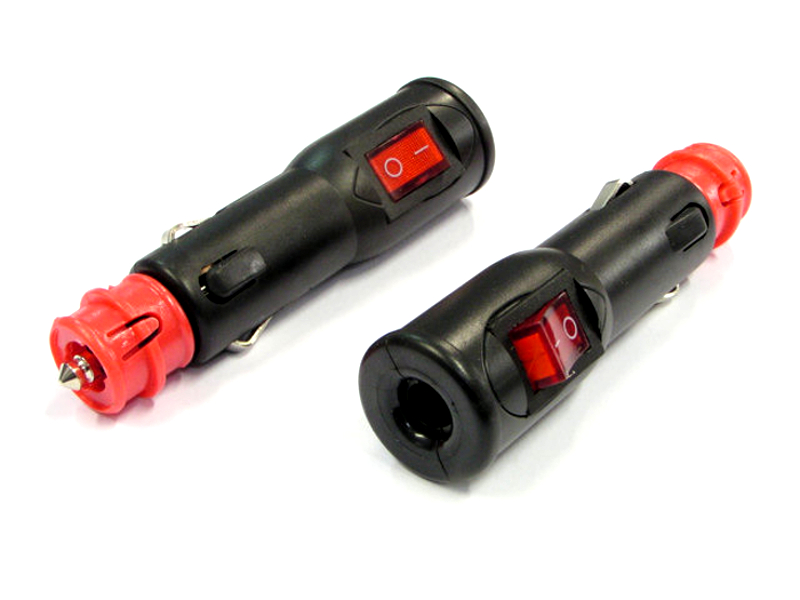 Wysokiej jakości wtyk zapalniczki samochodowej przeznaczony do montażu na przewodzie kablu zasilającym z wbudowanym wyłącznikiem.